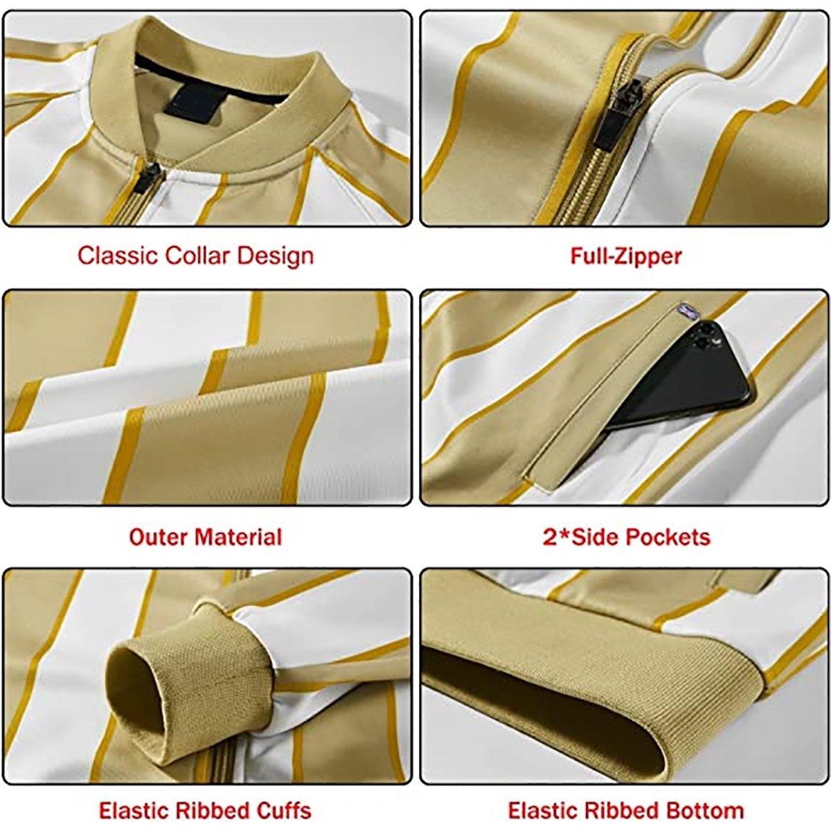 • Track suits for men set active jackets with 2 slant pockets, full-zip closure, stand collar, long sleeve; active pants with pockets, delicate waist elastic design with drawstring, easy to put on..